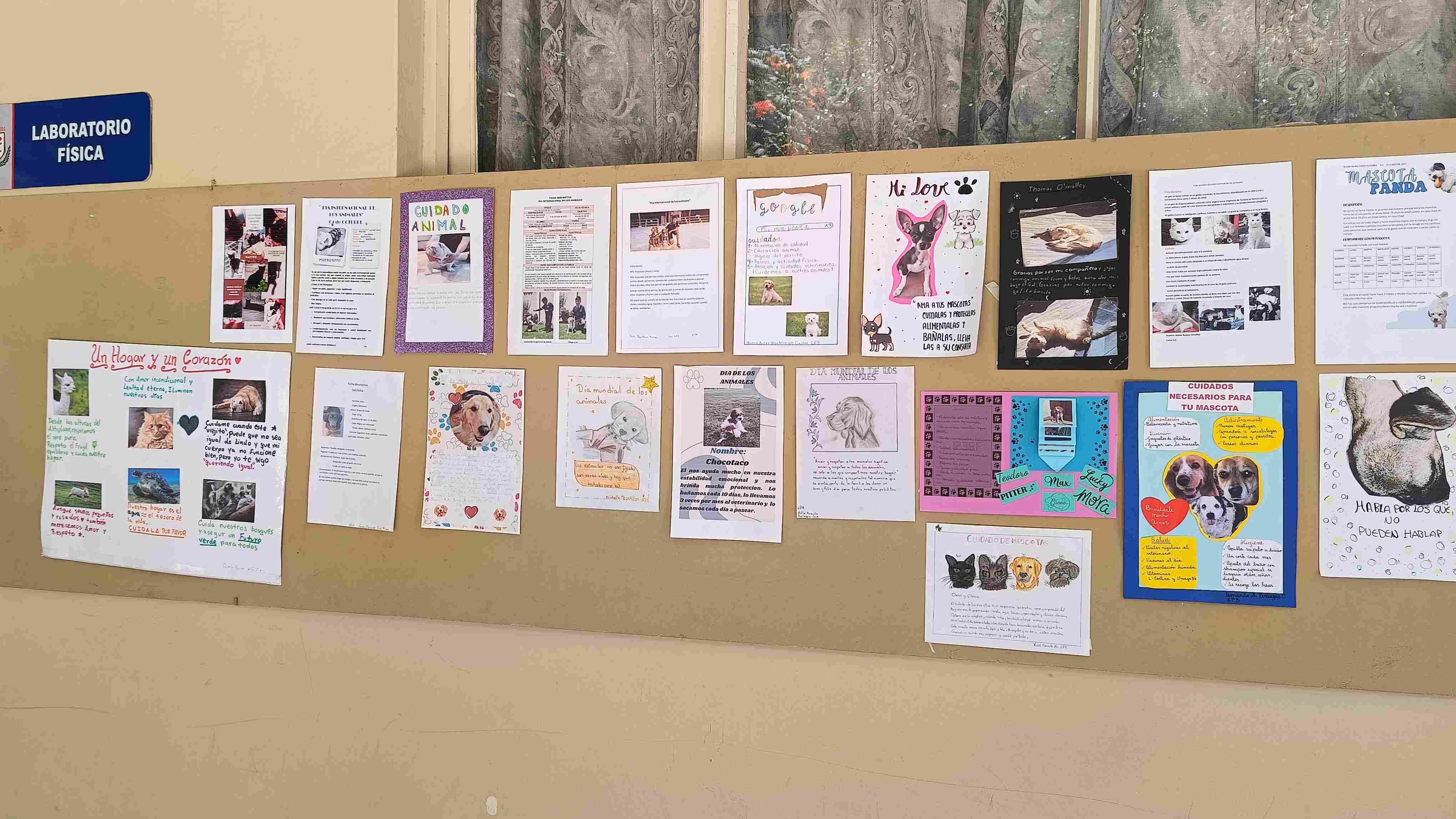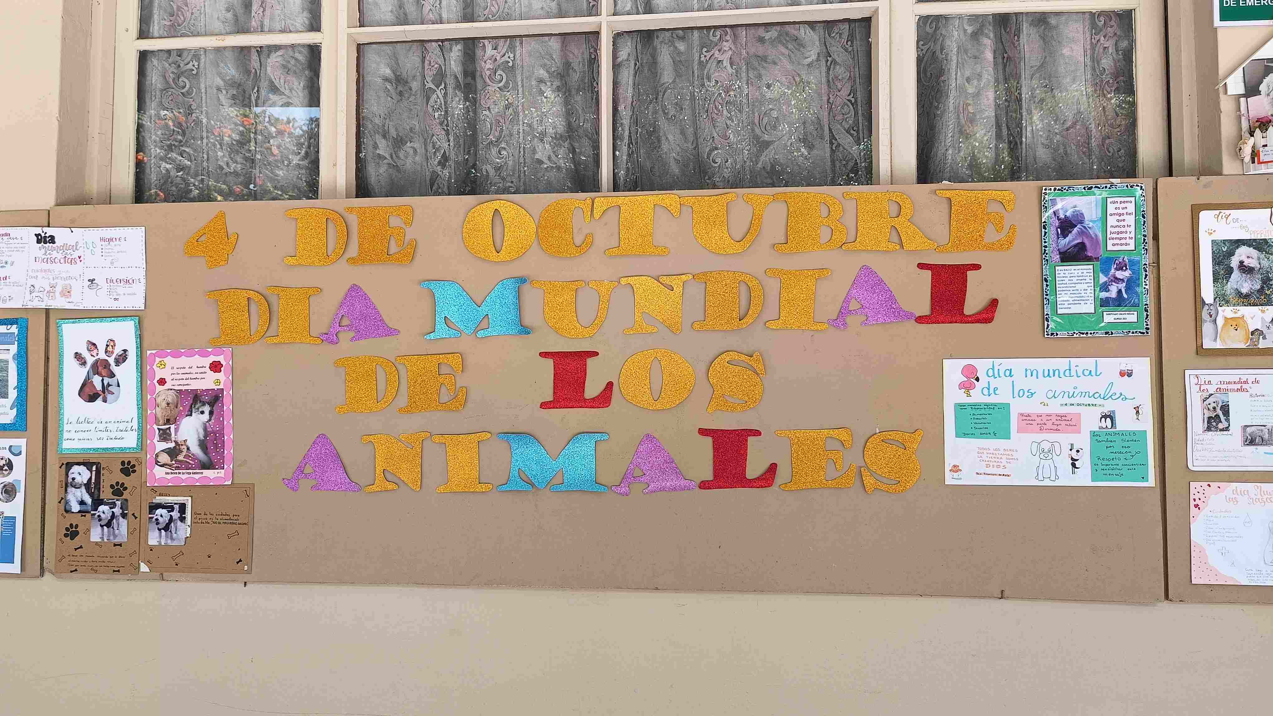 En esta fecha, 4 de octubre, recordamos el Día de los Derechos de los Animales, fecha que fue fijada por la festividad de San Francisco de Asís, el santo que amaba a los animales como criaturas de Dios, para poder recordar esta hermosa fecha, los estudiantes de secundaria de la mano de la materia de Biología realizaron un mural recordando a sus mascotas y motivando la adopción de mascotas en refugios. .